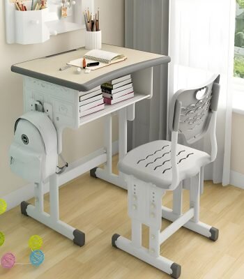 Both the desk and chair are constructed from high-quality materials—often combining engineered wood, metal frames, and comfortable upholstery—to ensure long-lasting use. The surfaces are easy to clean, making maintenance simple and hassle-free.