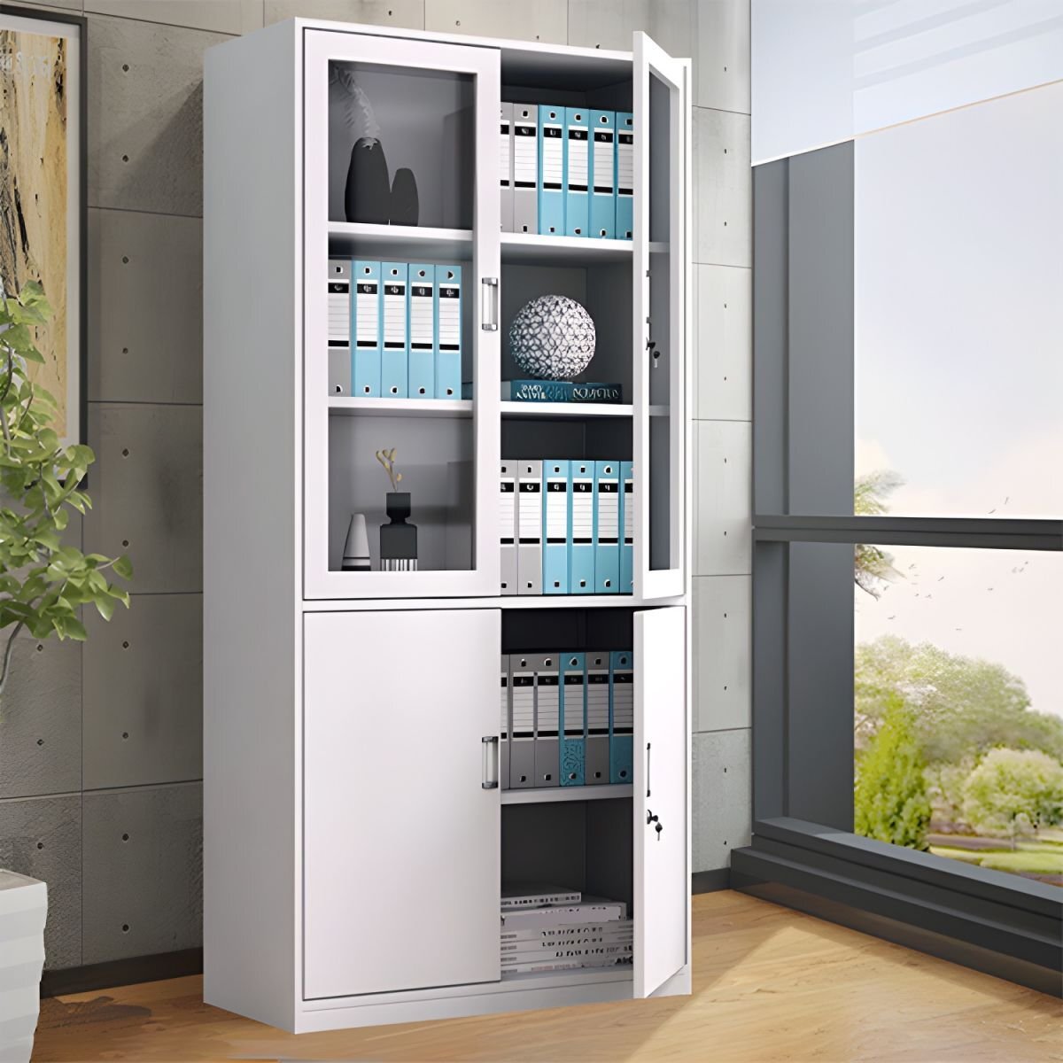 Two-Door Metallic Storage Office Cabinet: Organize Your Workspace with Style and Security