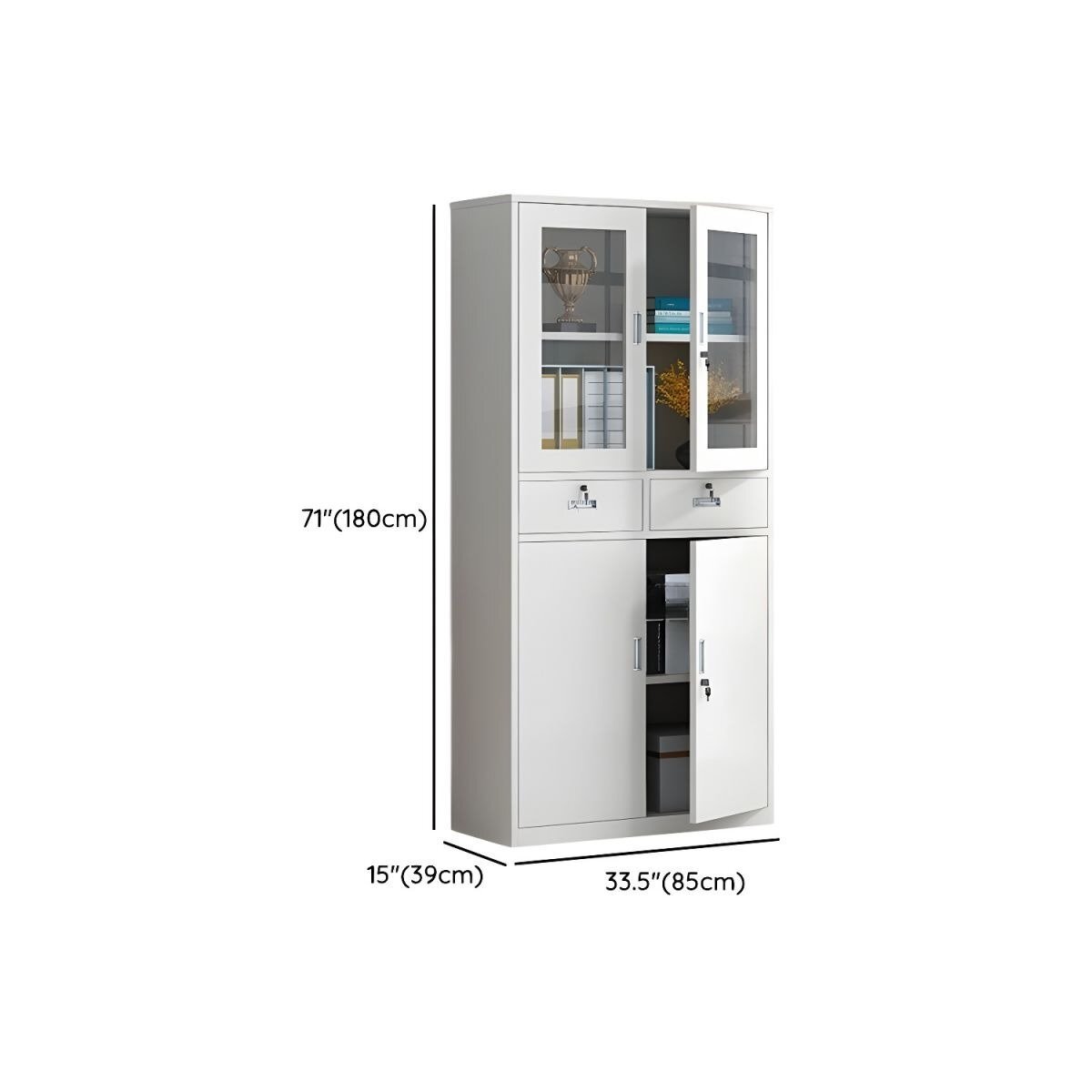 - Secure and Organized: Keep your office supplies and belongings secure and organized with the cabinet’s two-door design and adjustable shelves.