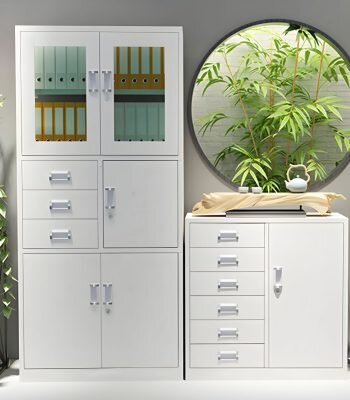 In addition, the cabinet is compact but spacious. It maximizes storage without taking too much space. You can keep them stacked or arranged for easy access. Its sturdy frame provides stability. You can also use them as a display surface for office accessories, awards, or decorative items.