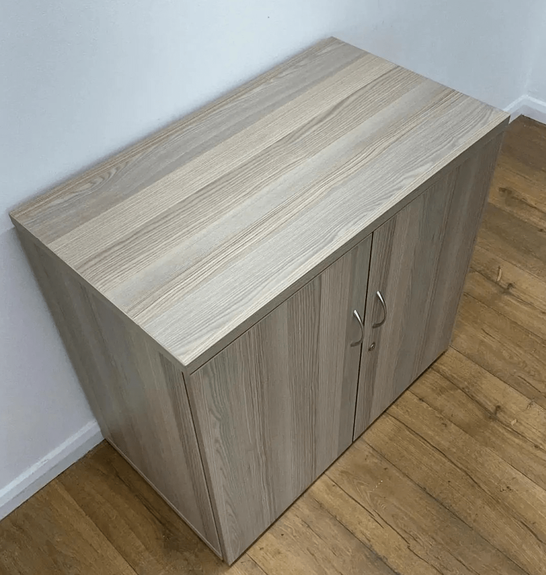 The flat top surface of the credenza can be used to display decorative items, hold office equipment, or serve as an additional work surface. Additionally, its compact design allows it to fit comfortably in both large and small spaces, thus offering versatile functionality.